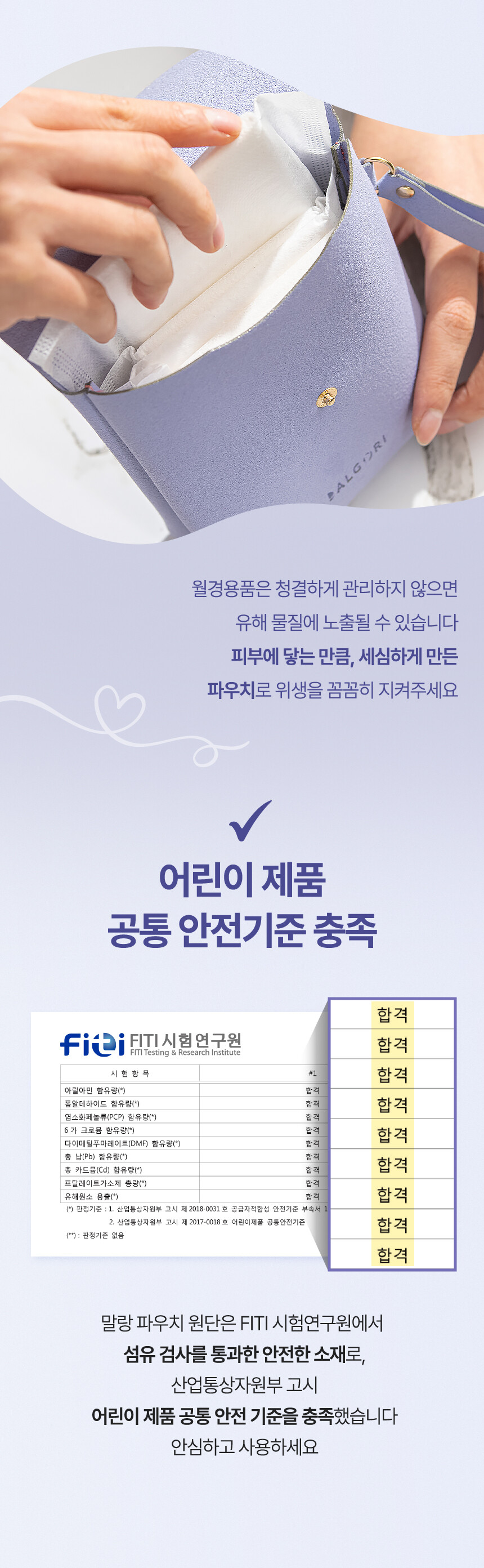말랑파우치는 '만 14세 이상'에 적합한 '가정용 섬유제품'입니다.