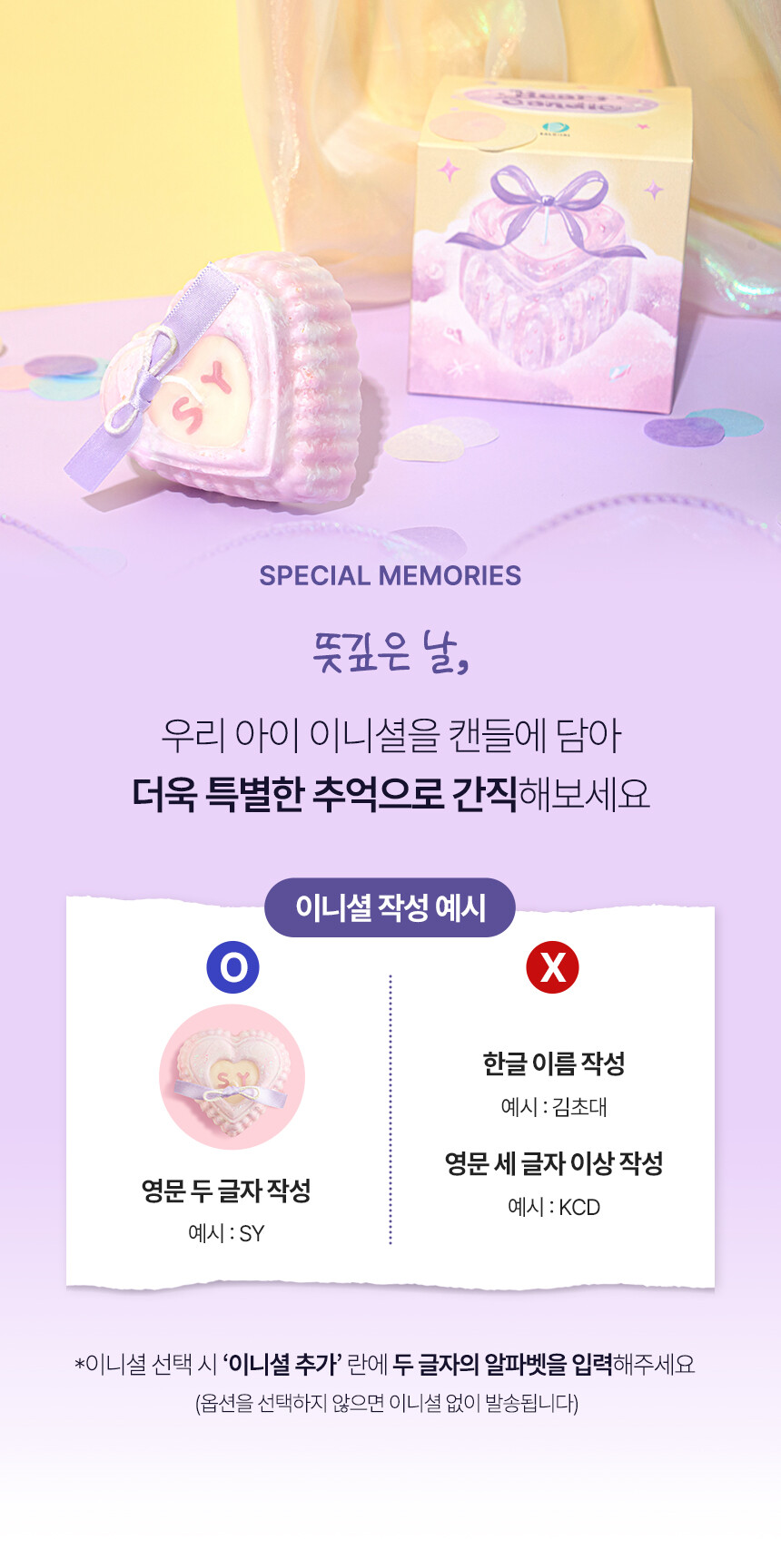 5. '이니셜 케이크 캔들'은 수공예 제품으로 크림&데코의 모양이 사진과 상이할 수 있습니다.
